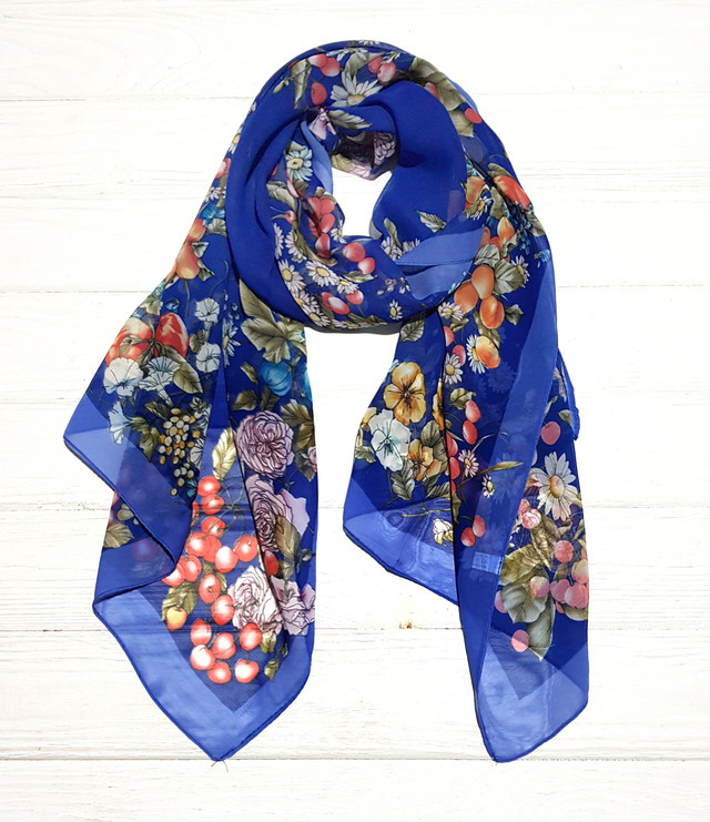 Яскравий, повітряний, легкий шарф із ніжного шифону з квітковими візерунками буде елегантним доповненням до вашого святкового та повсякденного вбрання. Розмір 50*160 см, м'яка приємна на дотик тканина.